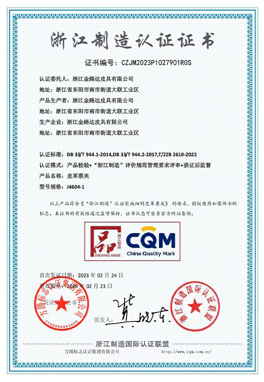 浙江制造认证证书